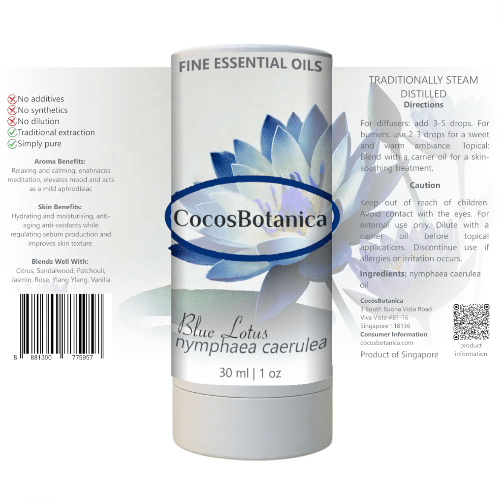 Immerse yourself in the mystique and allure of the ancient Blue Lotus, now available as part of CocosBotanica’s traditionally extracted essential oil collection. Revered since ancient Egyptian times for its captivating fragrance and symbolic importance, the Blue Lotus (Nymphaea caerulea) is not just a sight to behold but a botanical treasure offering profound aromatherapy and skin care benefits.